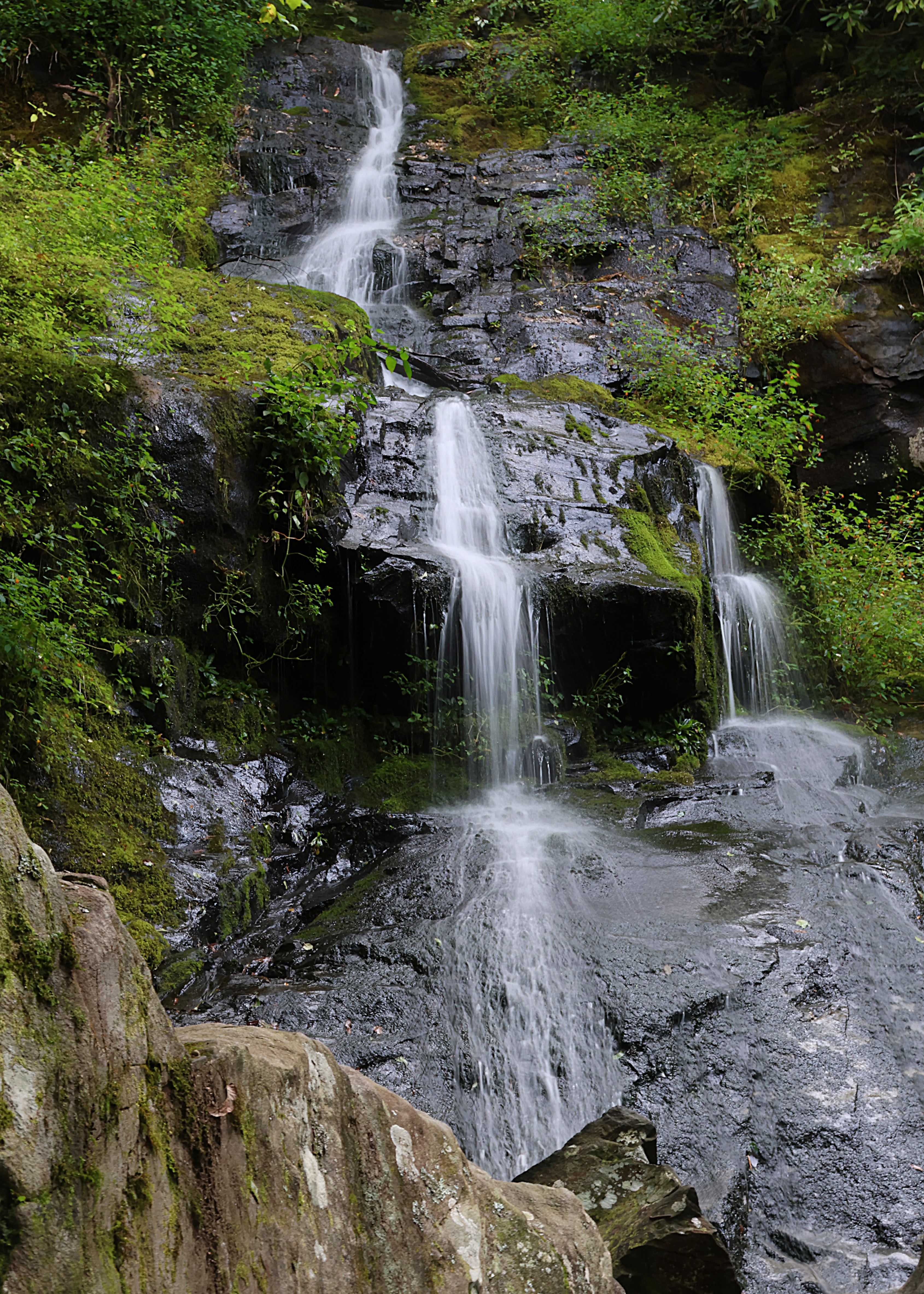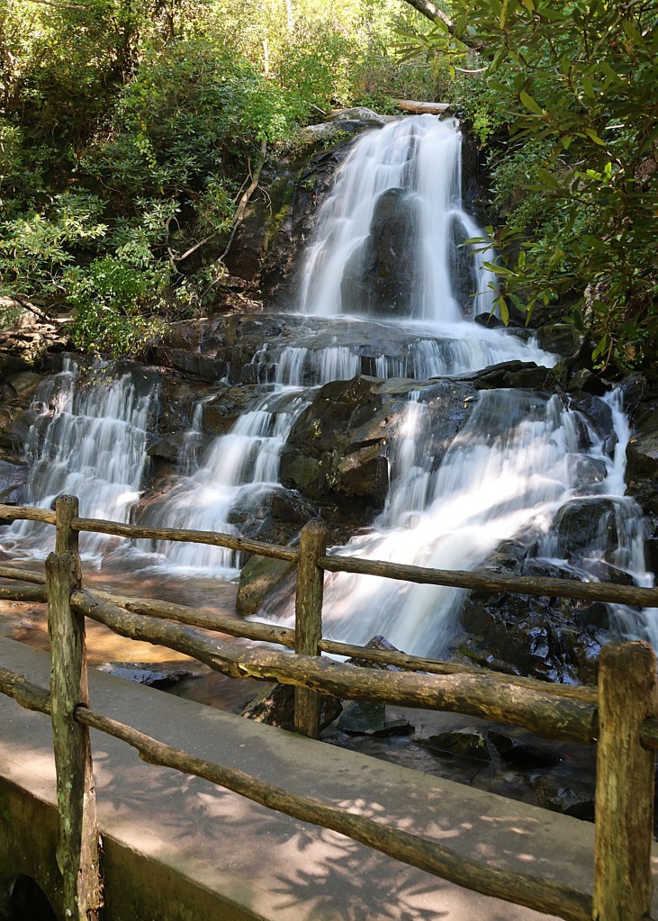 This is one of the most popular waterfalls in the park, offering a 2.4 mile out-and-back hike. The trail provides an asphalt surface for most of the way, although it can become uneven quickly. Overall, it is an easy hike suitable for most visitors. Along the trail, we discovered an abundance of wildflowers including asters, downy lobelia, goldenrod, and false foxglove. There is also the perfect spot to pause and capture a picture of the distant mountains.